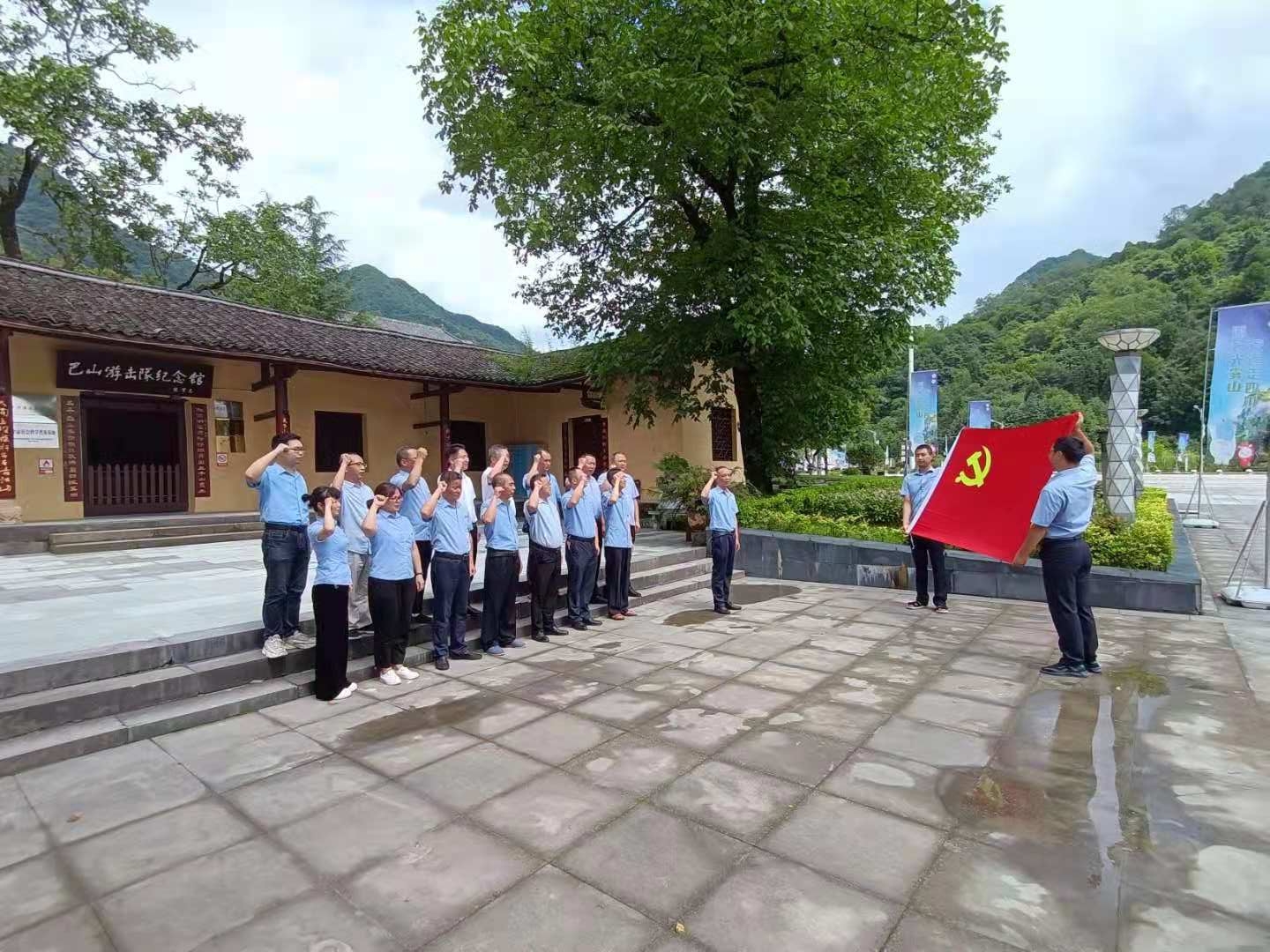 活動(dòng)現(xiàn)場(chǎng),同志們?cè)谥v解員的帶領(lǐng)下參觀(guān)了巴山游擊隊(duì)紀(jì)念館,展廳內(nèi)每一件展品、每一幅照片、每一段文字記載,生動(dòng)再現(xiàn)了當(dāng)年革命先烈追求民族獨(dú)立和解放而浴血奮戰(zhàn)的英勇歷史。講解員生動(dòng)講述著感人肺腑的紅色故事,讓大家仿佛置身于炮火連天的歲月之中,深深感受到革命先烈們戰(zhàn)斗的艱辛,為黨犧牲的決心,革命必勝的信心。在巴山游擊隊(duì)紀(jì)念館前,公司黨總支書(shū)記、董事長(zhǎng)李鵬帶領(lǐng)全體黨員重溫入黨誓詞,回顧入黨心路歷程,齊唱國(guó)歌,歌頌祖國(guó)。
