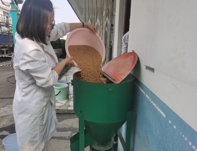 為確保政府儲備糧油輪換任務按時、按質(zhì)、按量的完成,市糧儲公司一線干部職工每天天剛拂曉就來到糧食收、出作業(yè)現(xiàn)場,開啟一天緊張有序的工作。質(zhì)檢員作為糧食質(zhì)量安全的守門員,他們從扦樣、分樣、送樣到檢測,從糧食常規(guī)質(zhì)量指標、儲存品質(zhì)指標到食品安全指標的檢測均嚴格按操作流程,高質(zhì)量完成每一份樣品、每一項指標的檢測任務,保障了入庫糧食質(zhì)量合格;倉儲管理員堅守卸糧現(xiàn)場,嚴格抽查入庫糧食質(zhì)量,盡管汗